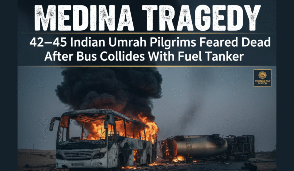 LocalMedina Tragedy: 42–45 Indian Umrah Pilgrims Feared Dead After Bus Collides with Fuel Tanker — PM, Vice-President Offer Condolences Riya Mehra / November 17, 2025