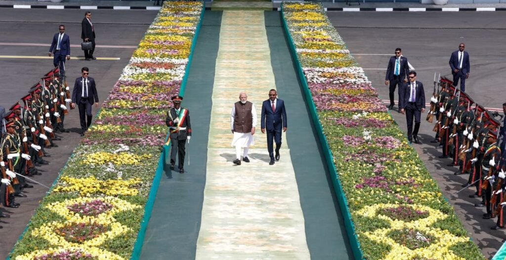 Prime Minister Narendra Modi’s first official visit to Ethiopia has marked a major step forward in India’s engagement with Africa and the Global South. The visit, which took place in Addis Ababa, highlighted India’s growing diplomatic partnership. Modi received a rare and warm welcome from Ethiopian Prime Minister Abiy Ahmed, who personally received him at the airport, underlining the importance Ethiopia attaches to ties with India.